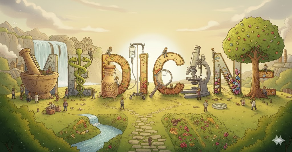 'medicine'은 기본적으로 "약", **"의약품"**이라는 뜻 외에도, "의학" 또는 **"의료"**라는 학문 및 분야를 의미하는 핵심 단어입니다. 보건, 과학, 윤리, 사회 시스템 관련 지문에서 광범위하게 등장합니다.