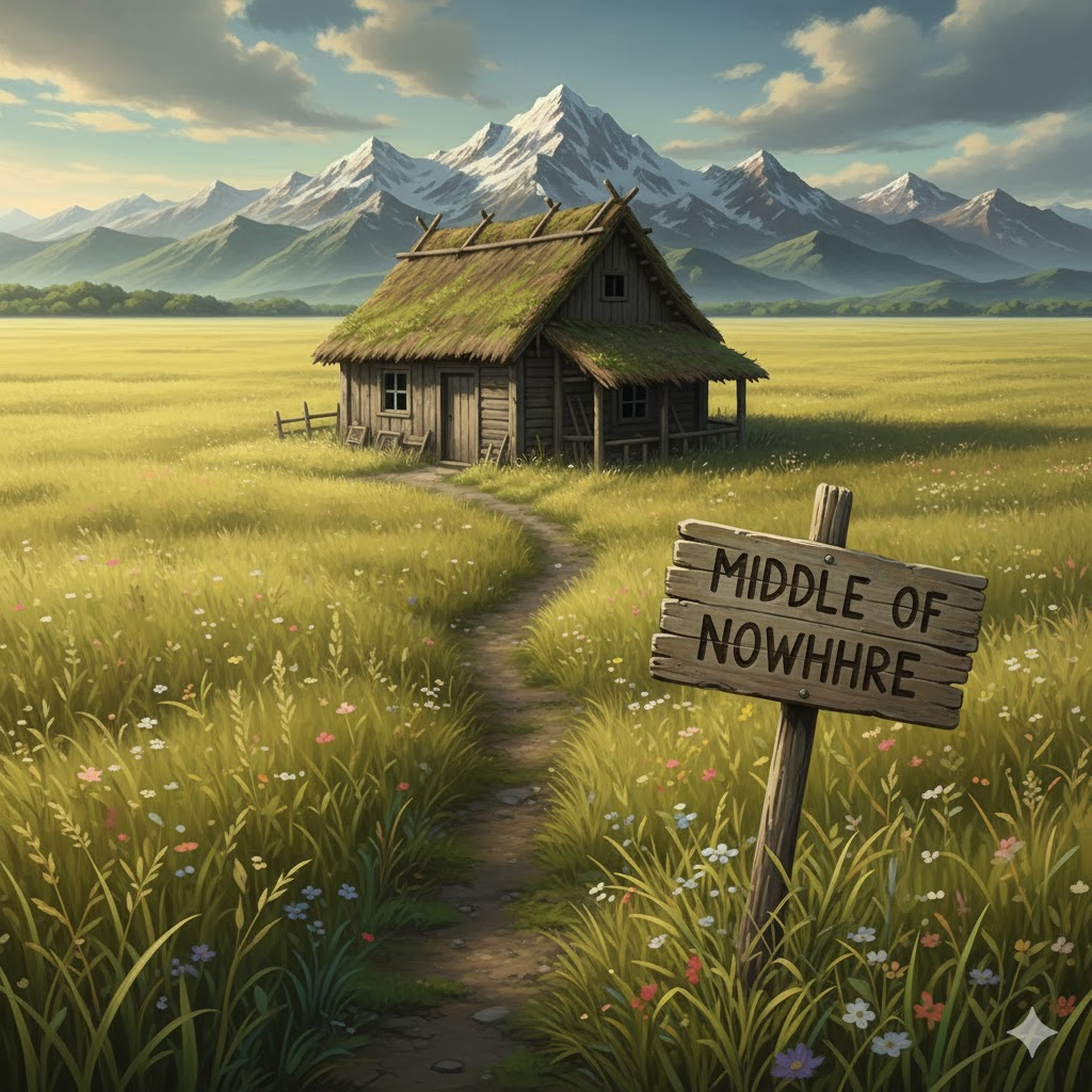 middle of nowhere [ˈmɪdəl əv ˈnoʊˌwɛər]