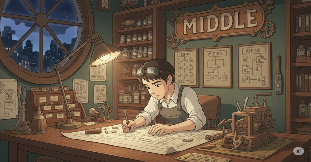고대 영어 middel ("중앙 지점, 중간 부분")에서 유래 → 게르만어 계열에서 '중간'을 의미하는 단어와 연결 → 즉, 원래 '두 극단 사이에 있는 지점이나 부분'을 의미했음 → 이 의미가 현대 영어에서 '어떤 것의 중앙 지점이나 부분' (중앙, 중간) 명사로 굳어졌어요. 나아가 이러한 '중앙 부분'이라는 개념이 확장되어 '신체의 허리둘레' (허리, 몸통)를 뜻하게 되었고, 형용사로는 '양 극단 사이에 위치한' (중간의, 중앙의) 의미와 '보통 수준의' (평균의, 보통의) 의미를 가지게 되었어요. 즉, '물리적, 시간적, 또는 추상적인 중앙 위치나 보통 수준'을 나타내는 핵심 다의어예요.