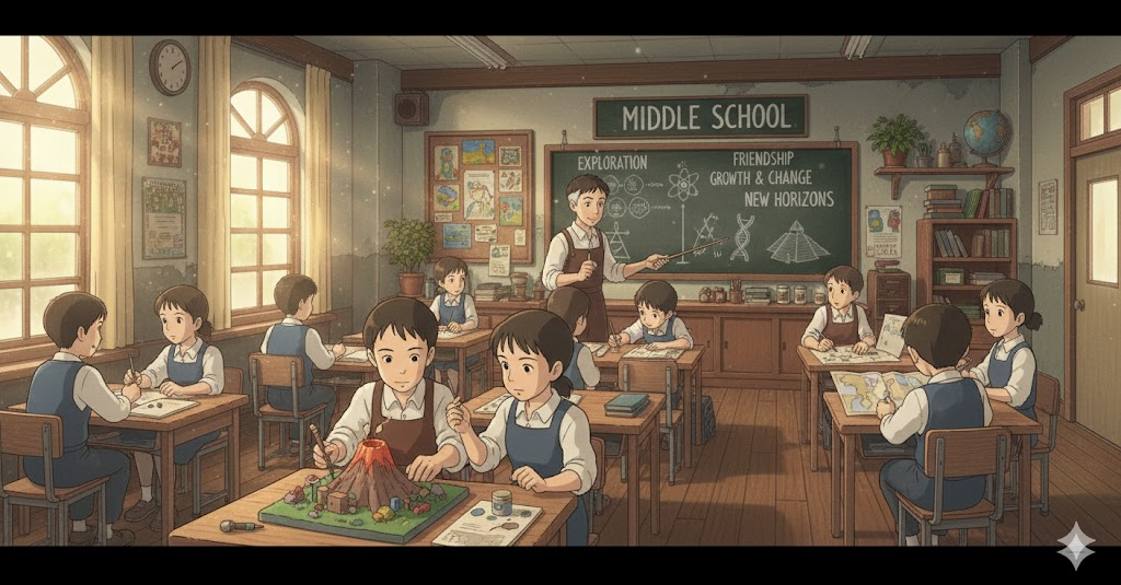 - 해석: 초등학교와 고등학교 사이에 있는 교육 과정의 중간 단계.