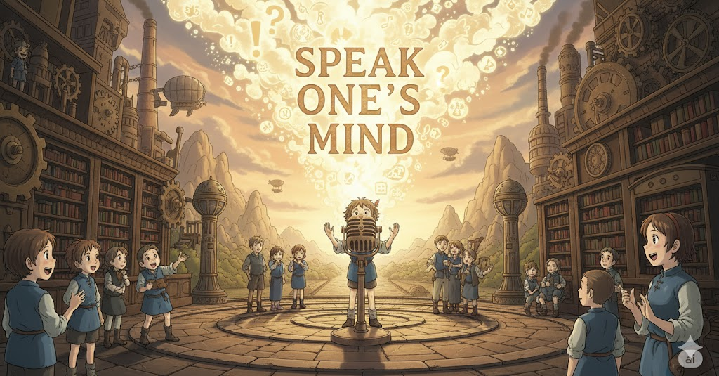 speak one's mind는 솔직함(honesty)과 주체성(agency)의 가치를 강조합니다. 사회적 지문에서는 타인의 시선 때문에 진실을 숨기지 않고 자신의 의견을 표현하는 행위가 집단의 창의성과 투명성(transparency)에 미치는 긍정적 영향을 논합니다.