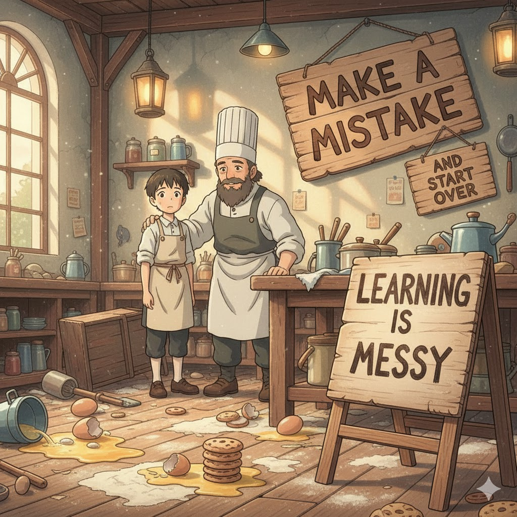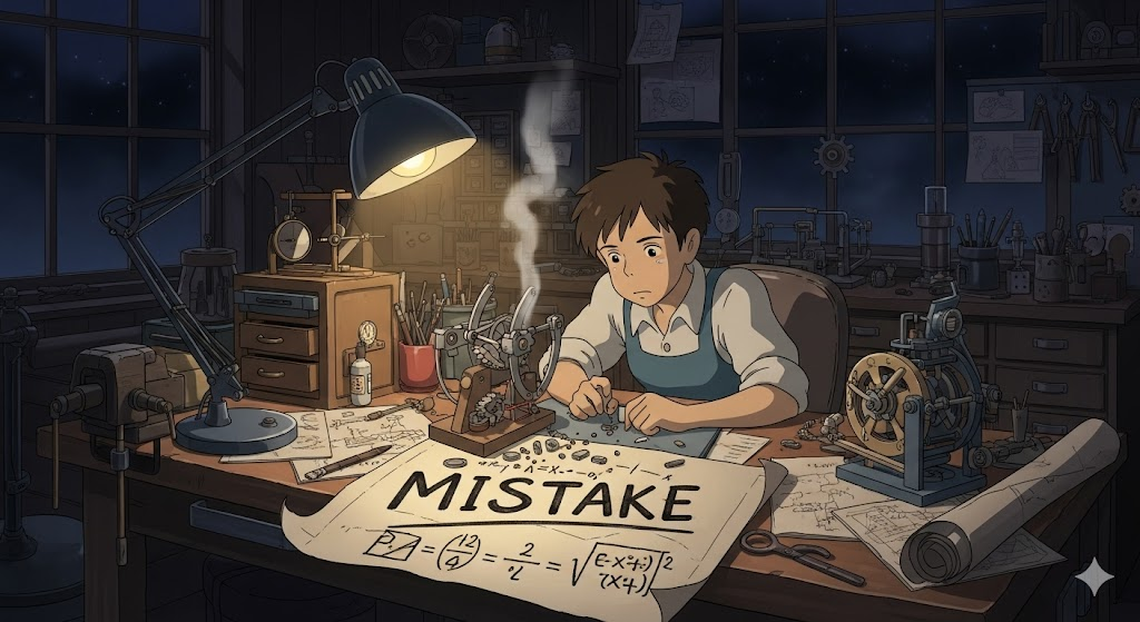 mistake [mɪˈsteɪk] 의도치 않은 오류, 반성의 계기