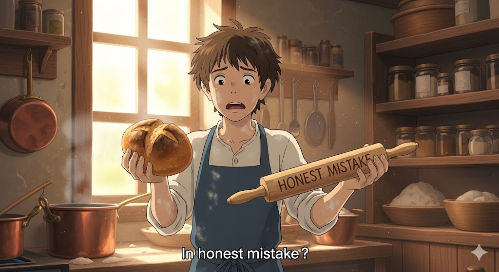 실수, 오류. 잘못된 행동이나 판단, 그리고 그 의도 여부.