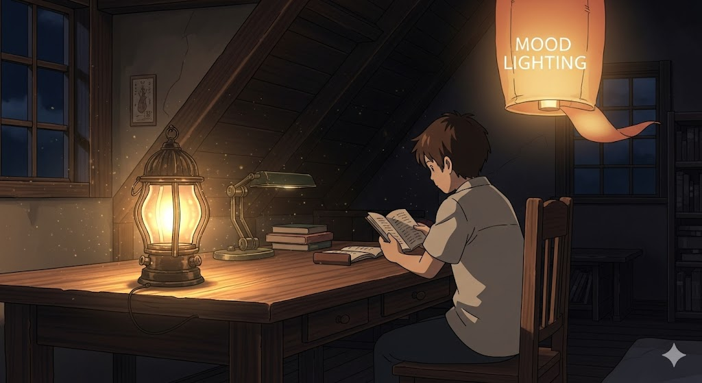 - 해석: 특정 분위기를 연출하기 위해 사용되는 은은하거나 색깔 있는 조명.