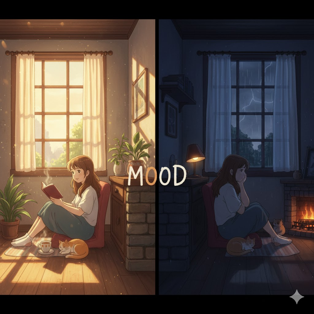 지문은 개인의 주관적인 감정($\text{in a good/bad mood}$) 상태가 행동, 인지, 의사 결정에 미치는 영향을 논합니다. 동시에 $\text{mood lighting}$이나 $\text{mood music}$처럼 객관적인 외부 환경이 개인의 $\text{mood}$를 조성($\text{set}$)하거나 변화($\text{lift}$)시킬 수 있음을 강조합니다.