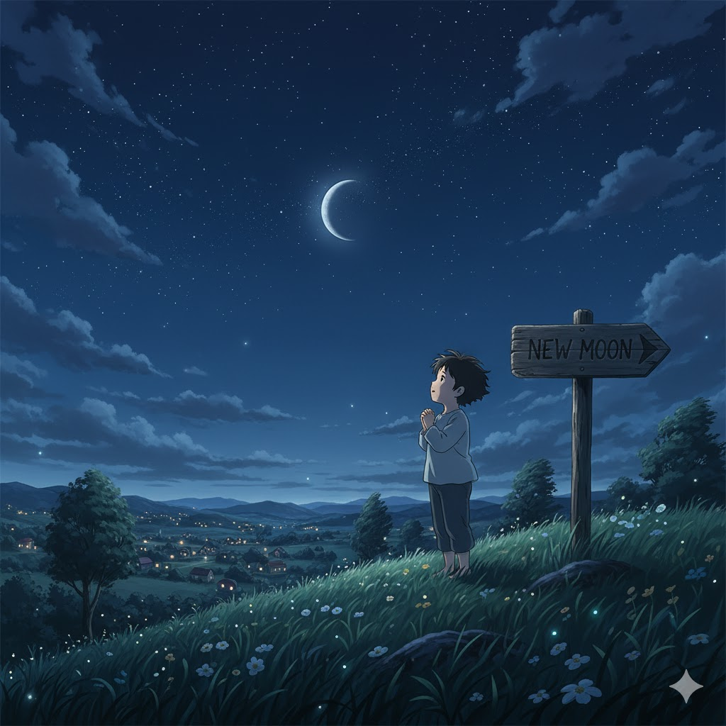 - 해석: 달이 태양과 지구 사이에 위치하여 지구에서 볼 때 거의 보이지 않는 시기 (달의 주기).