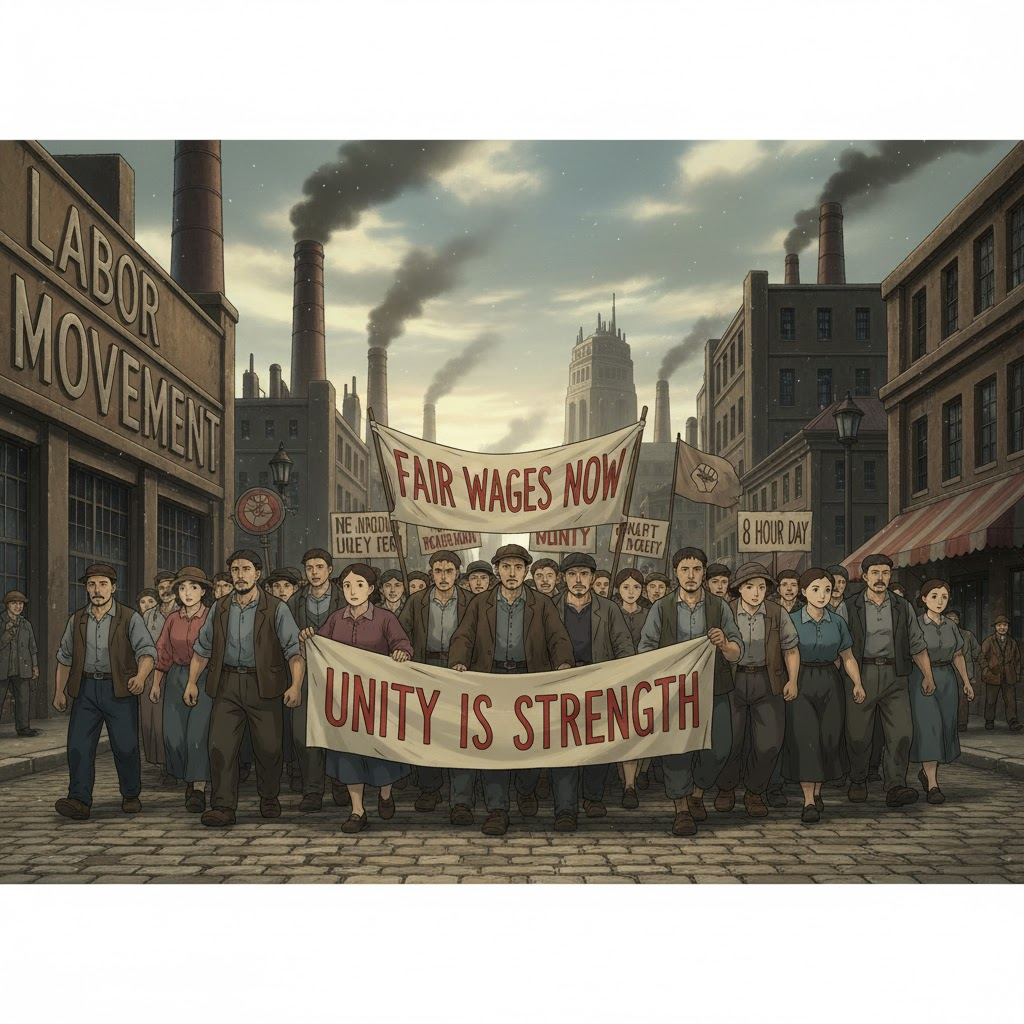 - 해석: 노동자들의 권리 향상, 공정한 임금, 안전한 근로 조건 등을 목표로 하는 사회 운동.