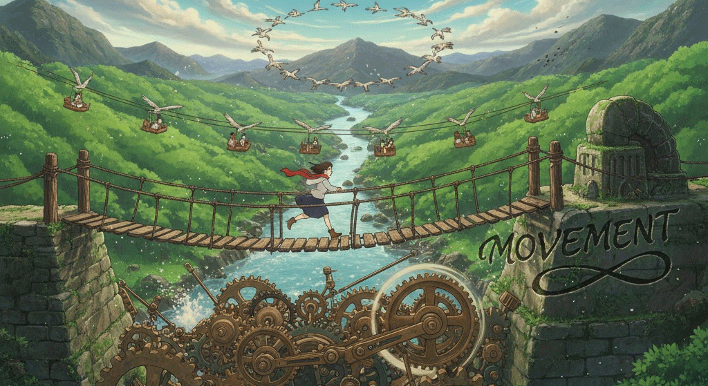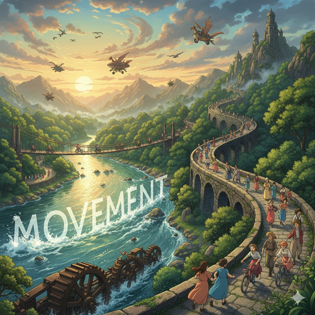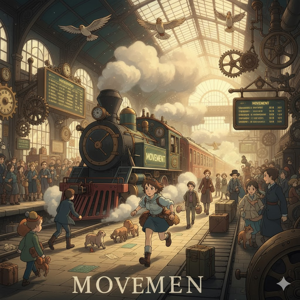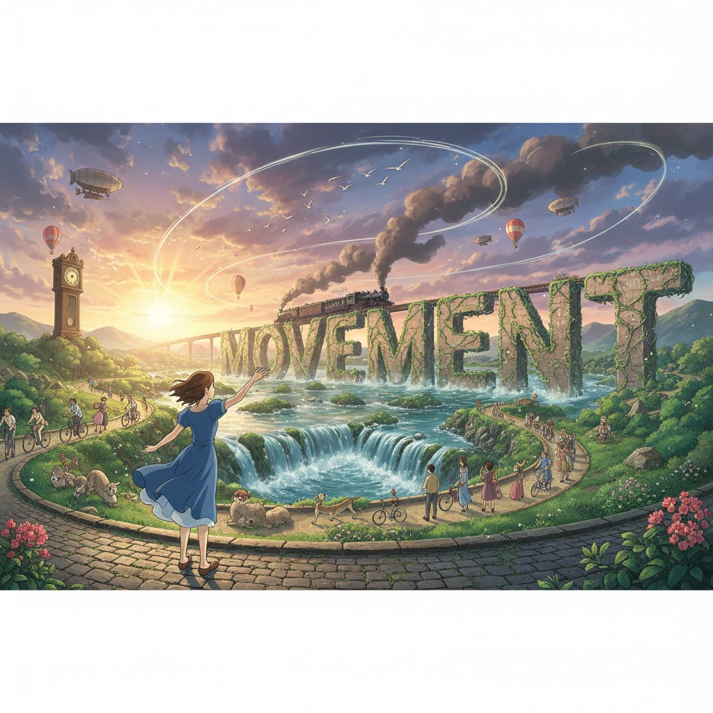 라틴어 movere ("움직이다")에서 유래 → 라틴어 movimentum ("움직임")을 거쳐 구 프랑스어 mouvement를 통해 영어로 유입 → 즉, 원래 '위치나 상태가 변화하는 것'을 의미했음 → 이 의미가 현대 영어에서 '물체나 사람이 위치를 바꾸는 물리적인 행위' (움직임, 동작) 명사로 굳어졌어요. 나아가 이러한 '움직이는 힘'이라는 개념이 확장되어 '사회적, 정치적 변화를 위한 조직적인 활동' (운동, 단체)을 뜻하게 되었고, '상황이나 시장 등이 변화하는 일반적인 경향' (동향, 추세)의 의미를 가지게 되었어요. 음악에서는 '독립적인 움직임'이라는 비유적 의미에서 '악장'으로도 사용됩니다. 즉, '물리적 변화, 집단 행동, 또는 변화의 경향'을 나타내는 핵심 다의어예요.