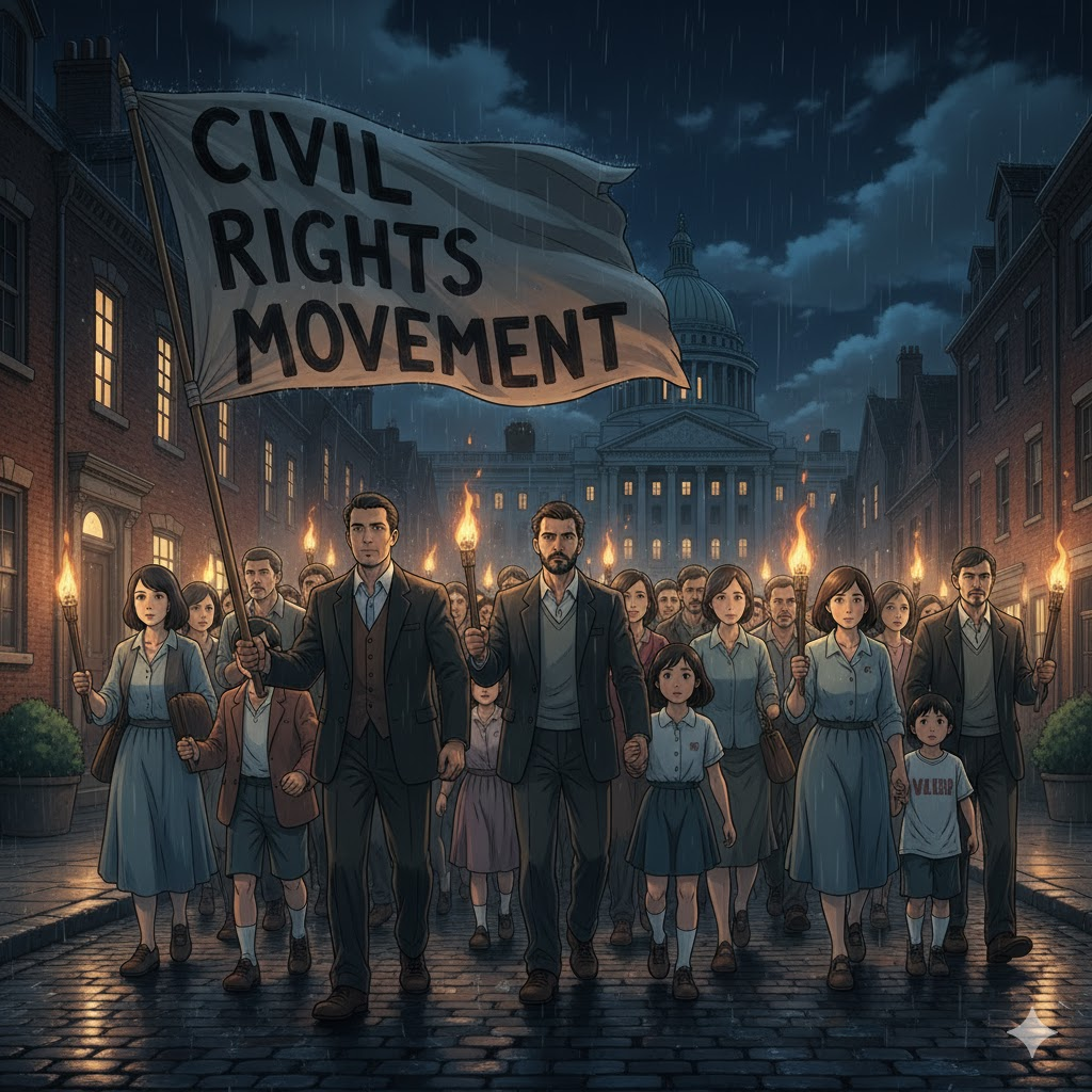 - 해석: 특히 1950~60년대 미국에서 모든 시민의 평등한 권리를 위해 싸웠던 역사적인 사회 운동.