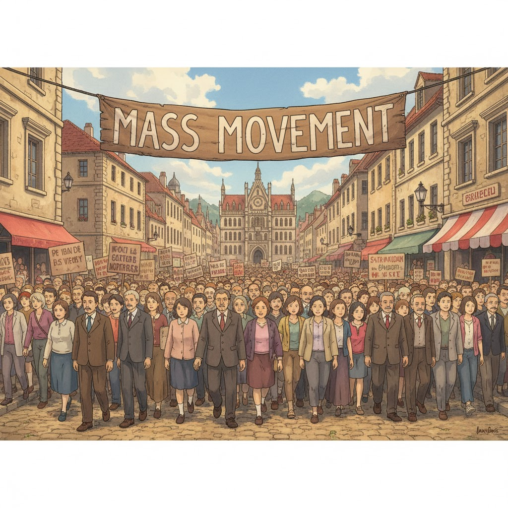 - 해석: 정치적인 목표 (예: 정권 교체, 제도 개혁)를 달성하기 위해 조직된 집단적인 활동.