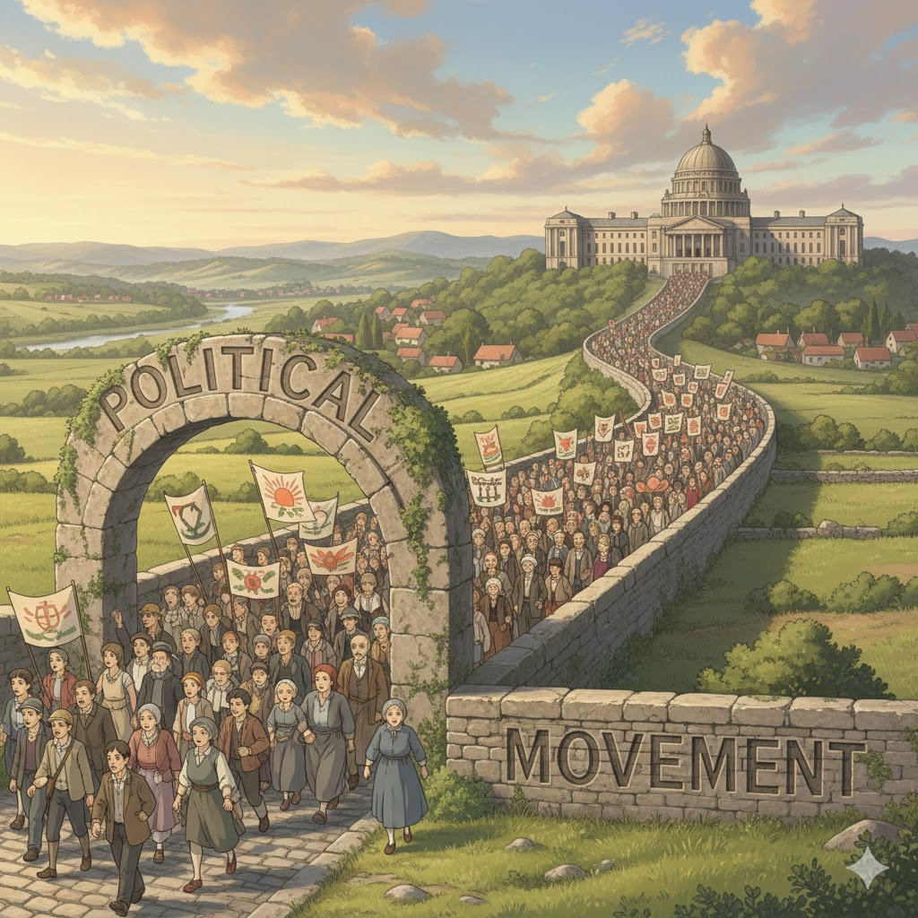 political movement [pəˈlɪtɪkəl ˈmuːvmənt]
