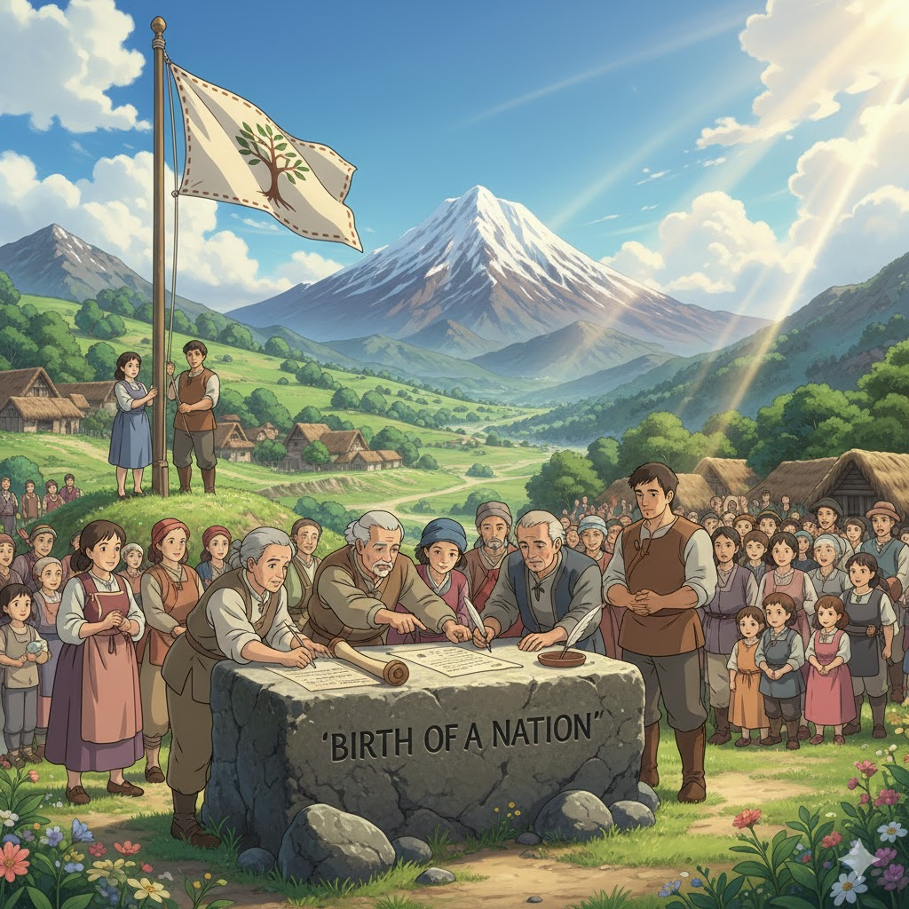- 예문: The birth of a nation is often accompanied by the creation of new foundational myths. (국가의 탄생은 종종 새로운 건국 신화의 창조를 수반한다.)