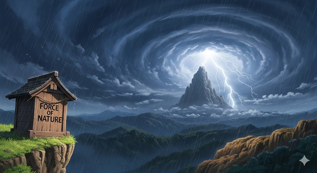 - 해석: 인간의 힘으로는 통제할 수 없는 자연의 강력한 힘 (예: 지진, 태풍), 또는 매우 강력한 영향력을 가진 사람.