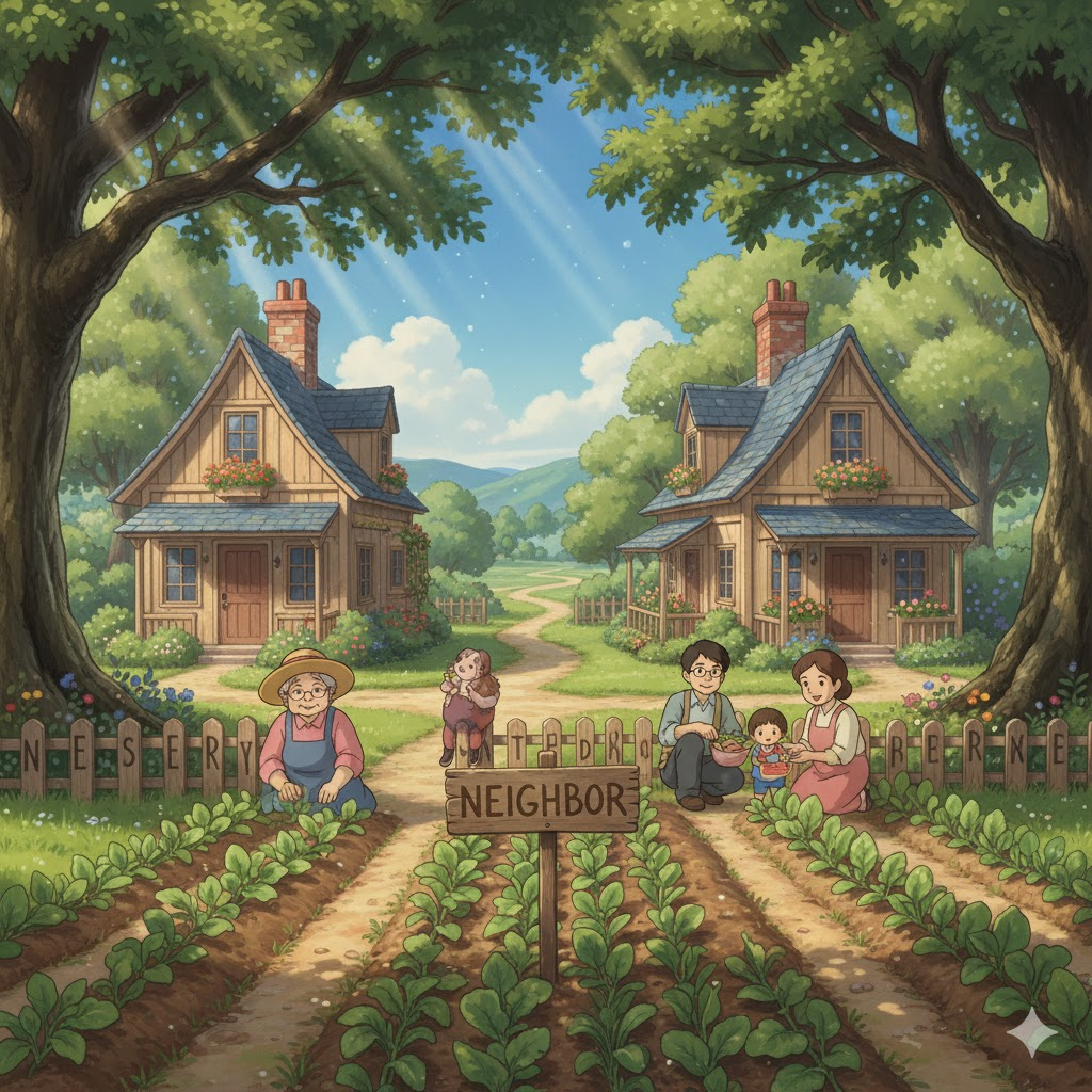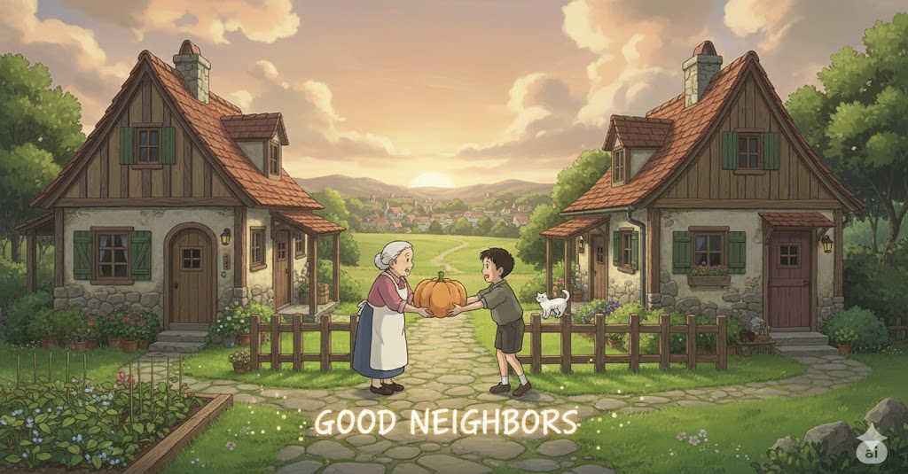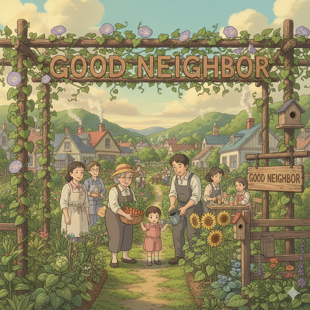 - 해석: 친절하고 다정한 태도로 교류하는 이웃.