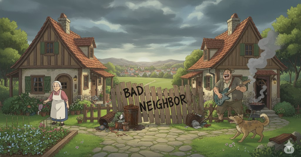 (명사) 나쁜 이웃, 무례한 이웃