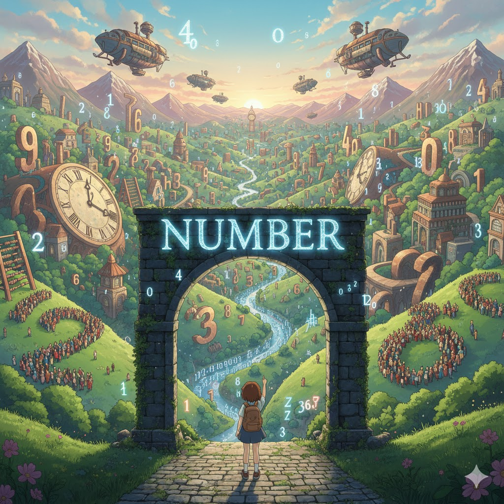 수, 번호. 양을 나타내는 기호나 그 수량, 그리고 다수나 무수함의 표현.