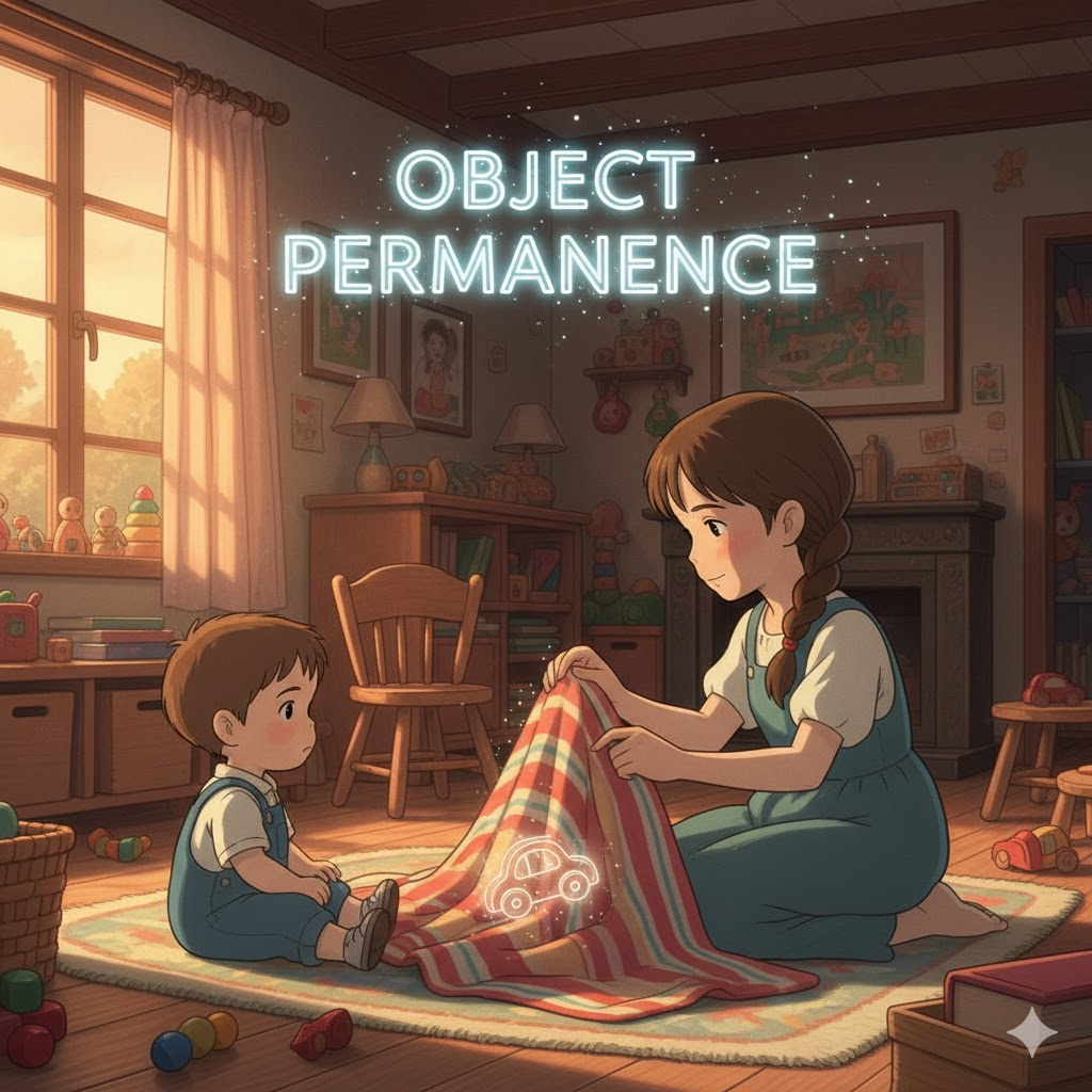 object permanence는 유아의 초기 인지 발달을 설명하는 심리학적 이론의 핵심입니다. 이 개념은 세계를 이해하고 표상(representation)하는 인간의 기본적인 사고 구조가 어떻게 형성되는지를 논하는 소재가 됩니다.