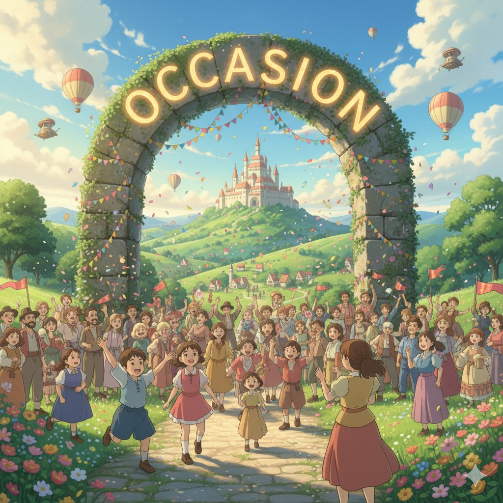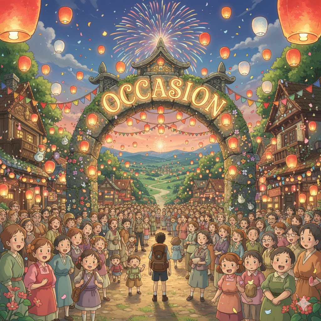 '일상적'(normal) 이지 않고, '결혼식'(wedding), '기념일'(anniversary), 혹은 '시상식' (award ceremony) 등 '공식적'(official) 혹은 '개인적'으로 '중요'(important)한 '주목'(attention) 을 받는 '사건'(event)이나 '시기'(occasion)를 의미합니다. '격식'(formal) 있는 준비'(preparation)나 '축하'(celebration)가 요구됩니다.