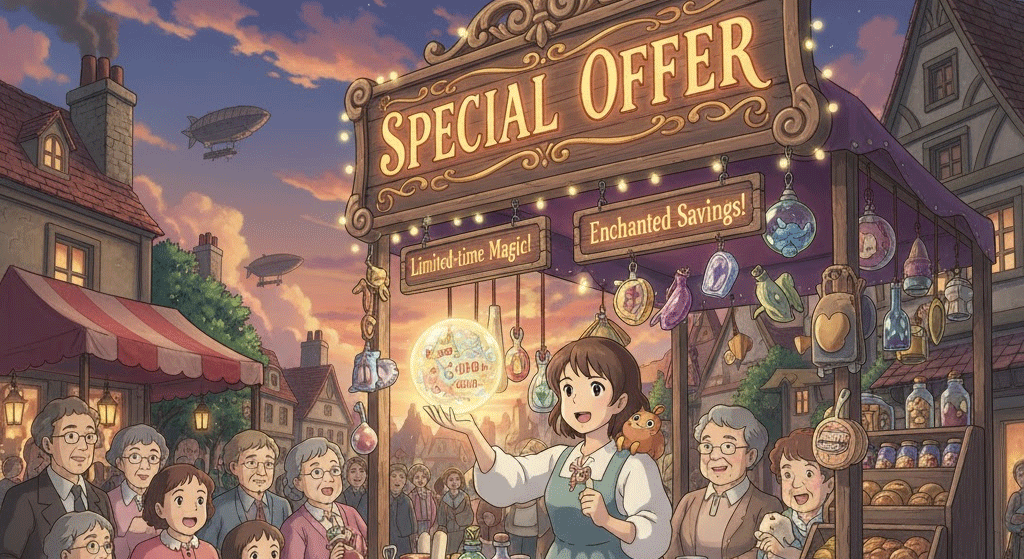- 해석: 정상 가격보다 낮은 가격이나 추가 혜택을 제공하는 일시적인 판매 제안.