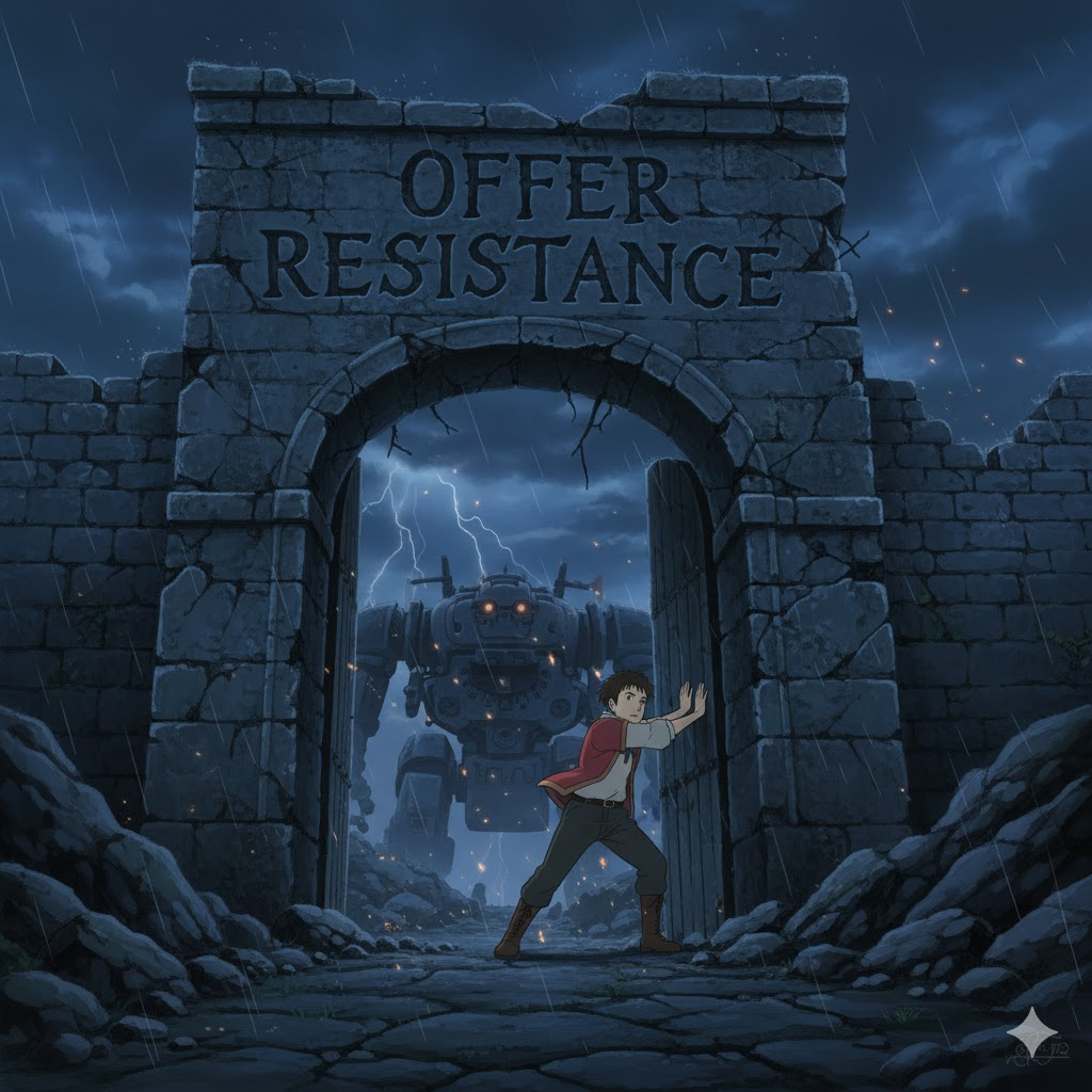 - 해석: 외부의 힘, 압력, 또는 변화에 대해 대항하거나 거부하는 행위.