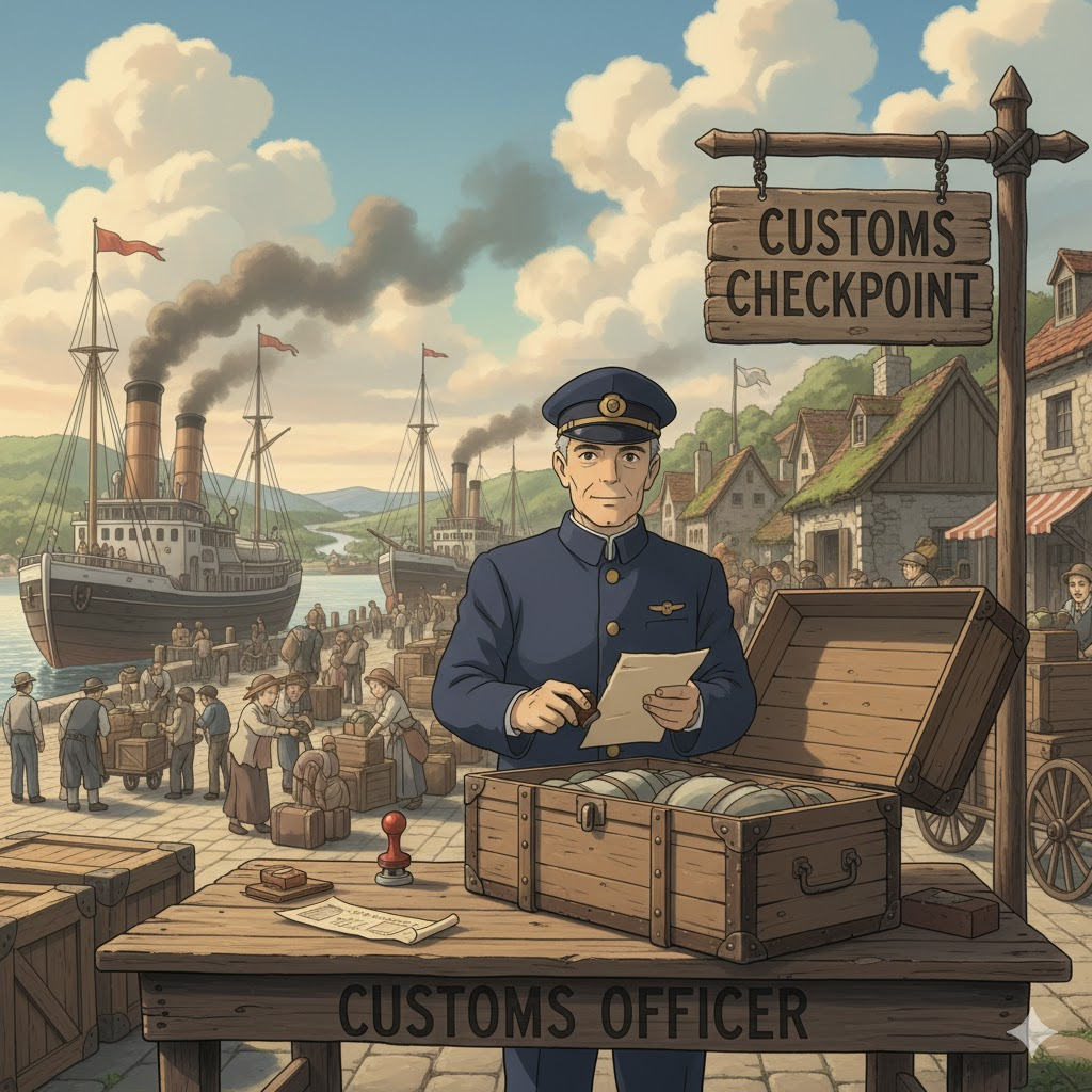 **'국경'(border)**이나 **'공항'(airport)**에서 '수입'(import) 및 '수출'(export) 물품에 대한 '관세'(customs **duty)**를 **'징수'(collect)**하고, '밀수' 등의 '불법'(illegal) 활동'을 **'규제'(regulate)**하는 **임무'(duty)**를 가진 공무원을 의미합니다. '국가'(nation) 재정과 '보안'(security) 유지에 초점이 맞춰집니다.