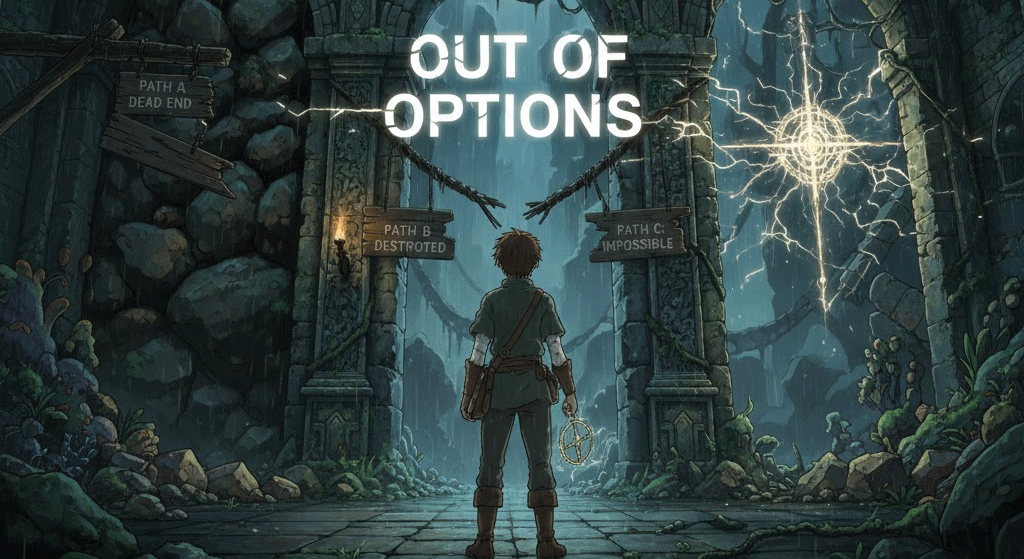 9. out of options (선택의 여지가 없는/궁지에 몰린)