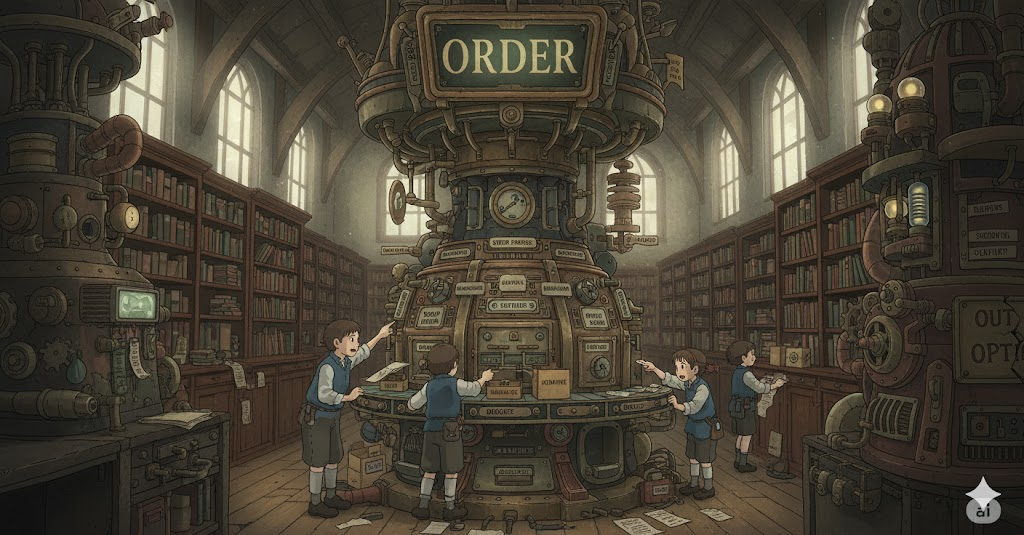 out of order는 규칙이나 절차의 위반이 시스템(기계 또는 사회)에 미치는 부정적인 영향을 나타냅니다. 반면 ordering principle은 복잡한 현상을 이해하기 위해 명확한 분류와 구조가 필요하다는 과학적 사고의 근간을 강조합니다.