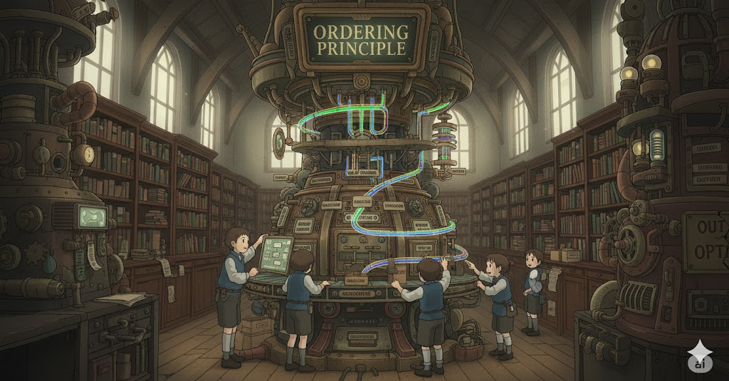 - 예문: The scientist sought the underlying ordering principle that governed the chaotic system. (그 과학자는 혼란스러운 시스템을 지배하는 근본적인 정렬 원리를 탐구했다.)