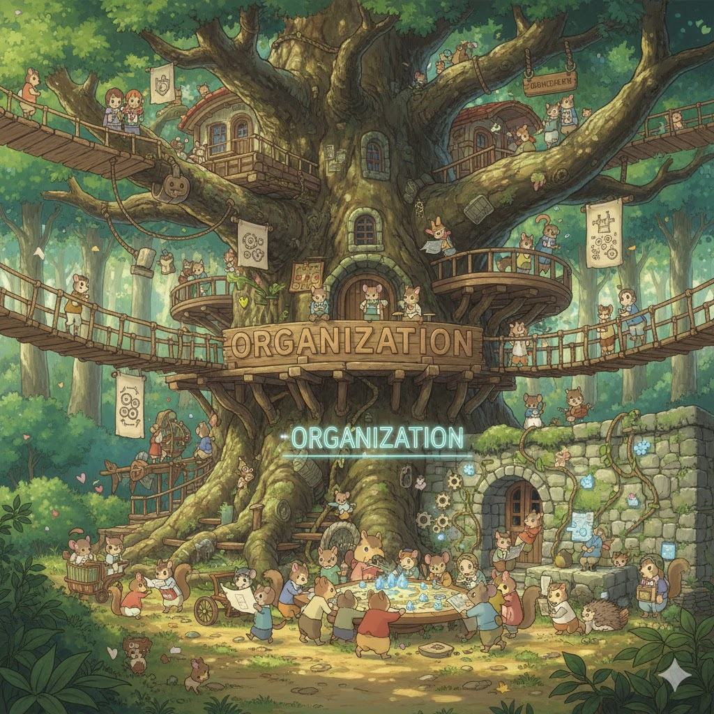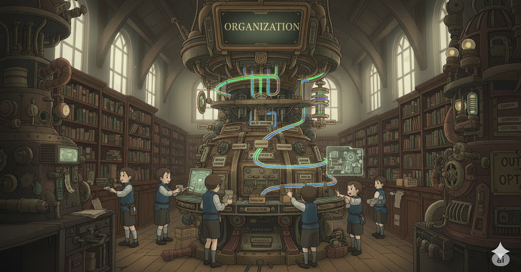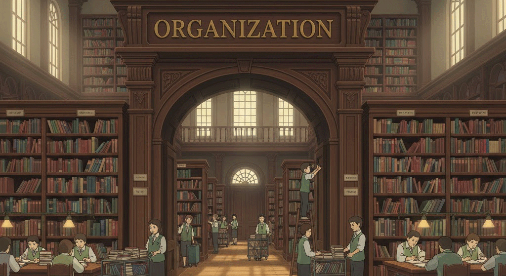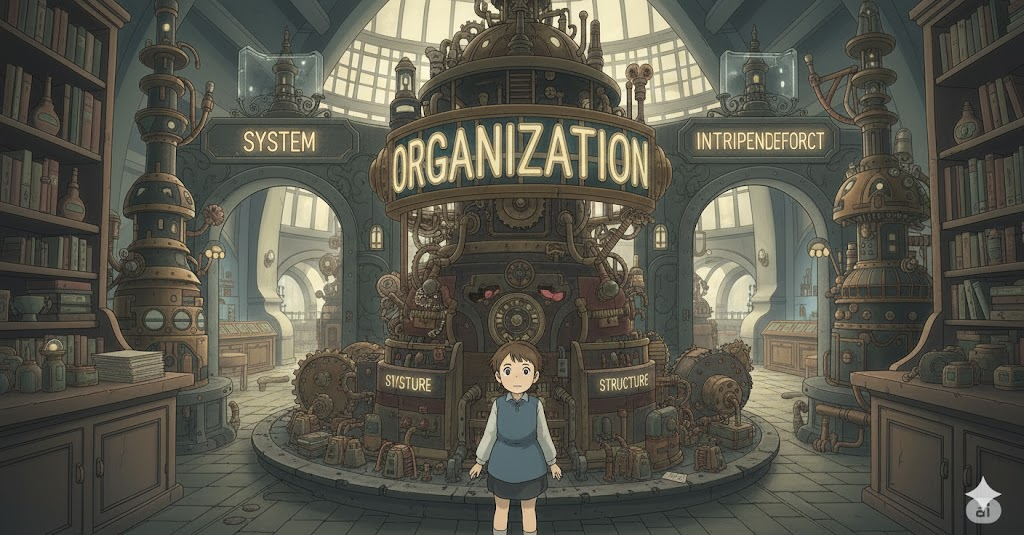 | organization | 그리스어 organon (도구, 기관) → 라틴어 organum | 특정 목적을 위해 도구처럼 체계적으로 구성된 구조. | '기관/도구' (목적 달성 수단) → '조직/단체' (목표를 가진 사람들의 집합) → '조직화/구성' (체계적인 배열 행위) → '구조/체계' (배열 방식) |