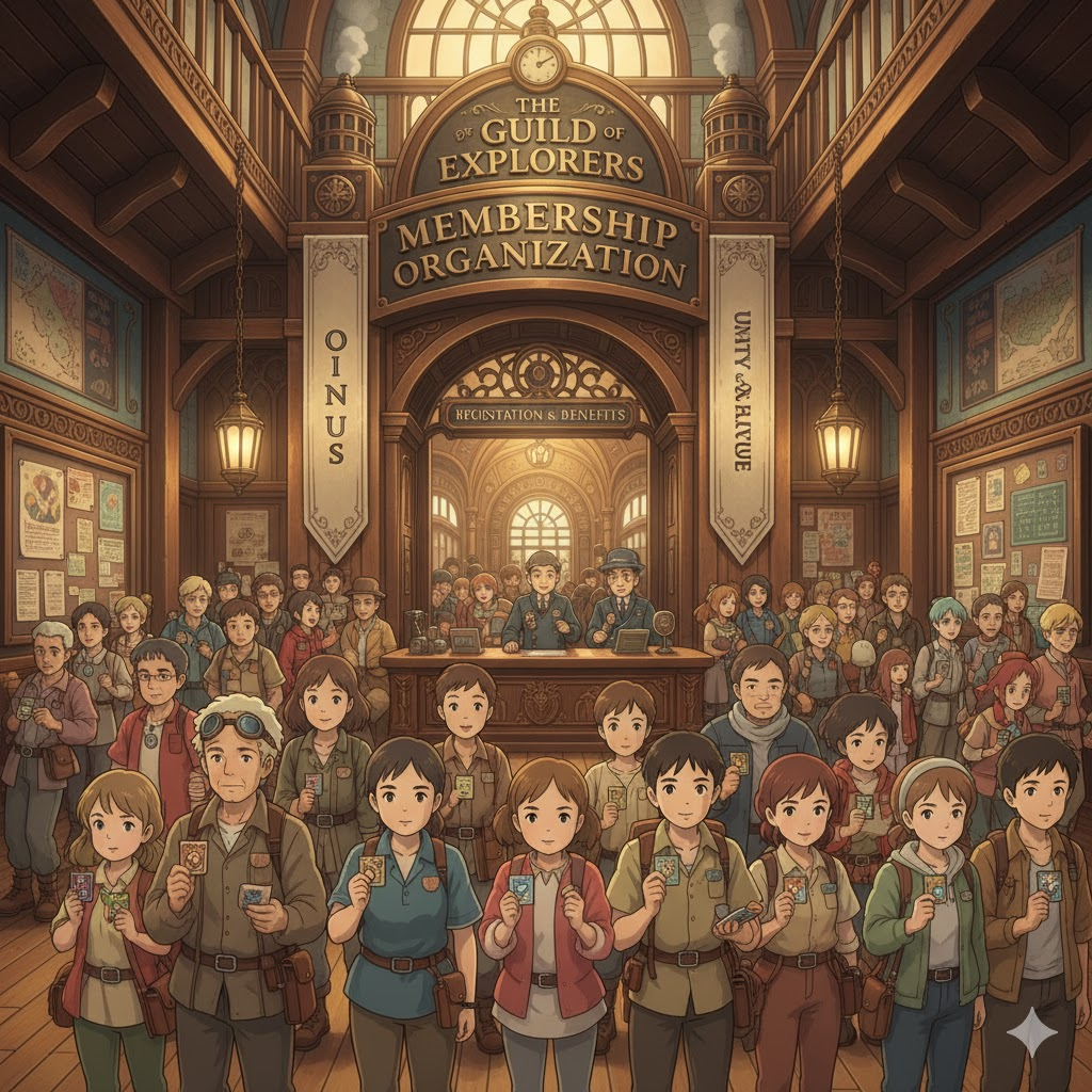 '개인'(individual)이나 '단체'가 '회원'(member)으로 '가입'(join)하고 '회비'(fee)를 '지불'(pay)함으로써 '특정'(specific) '혜택'(benefit), '서비스'(service), 또는 '권한'(rights)을 '공유'(share)하는 '조직'(organization)을 의미합니다. '이익'(interest) 집단이나 '전문' '협회'가 이에 해당하며, '회원'의 '참여'(engagement)에 초점이 맞춰집니다.