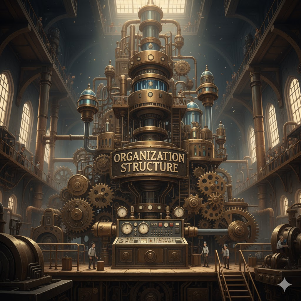 - 해석: 업무, 권한, 책임이 배분되고 조정되는 공식적인 방식이나 틀.