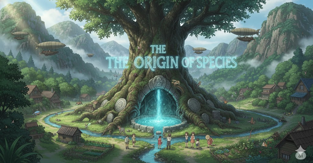 the origin of species [ðɪ ˈɔːrɪdʒɪn əv ˈspiːʃiːz]