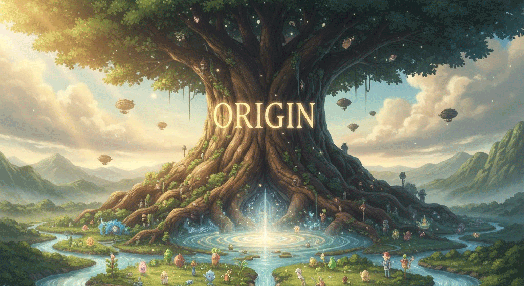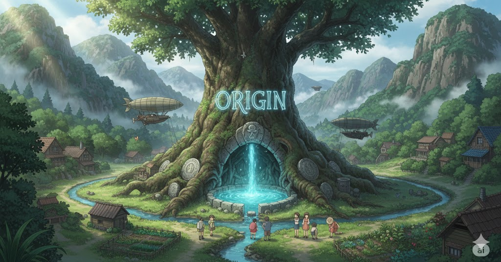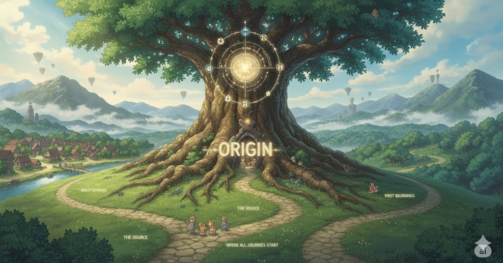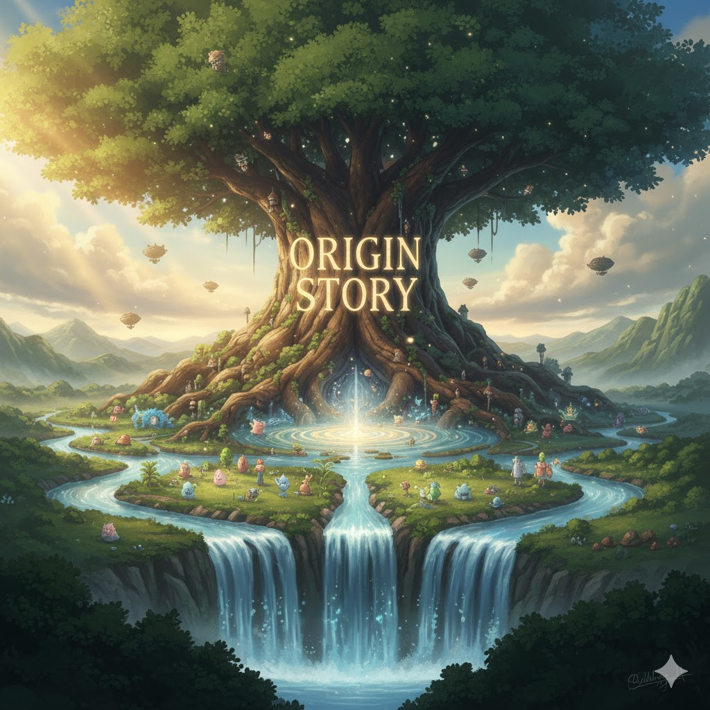 '영웅'(hero), '회사'(company), 또는 '조직'(organization)과 같은 '존재'(entity)가 '어떻게', '시작'(start)되었고, '현재'의 '모습'(appearance)을 '갖게' 되었는지 '그' '배경'(background)이나 '과정'(process)을 '설명'(explain)하는 '이야기'(story)를 의미합니다. '정체성'(identity)과 '성장'(growth) '경로'를 강조합니다.