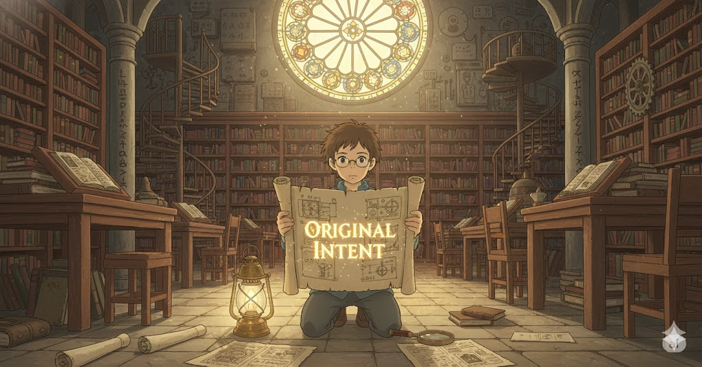 - 해석: 법률, 헌법, 또는 공식 문서의 작성자가 처음 가졌던 본래의 목적이나 의도.