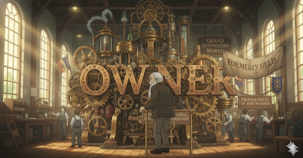 '현재'(present)는 '아니지만', '과거'(past)에 '재산'(property), '사업체'(business), 또는 '물건'(item)을 '소유'(owner)했던 사람을 의미합니다. '소유권'(ownership)의 '이전'(transfer)과 '과거'의 '책임'(responsibility)을 언급할 때 사용됩니다.