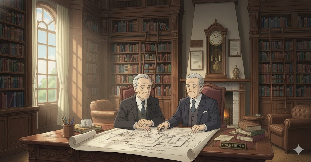 '법률'(legal) 또는 '회계'(accounting) '회사'와 같은 '전문직'(professional) '회사'에서, '오랜'(long-term) '경력'(career)과 '권위'(authority)를 가지고 '회사'(firm)의 '운영'(operation)과 '전략'(strategy)에 '주요'(major) '통제권'(control)을 행사하는 '파트너'(partner)를 의미합니다. 'junior partner'와 대비됩니다.