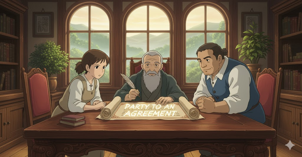 '공식적인'(official) **'계약'(contract)**이나 **'합의'(agreement)**에 **'서명'(sign)**하고, '그것'의 **'조건'(terms)**과 **'의무'(duty)**에 **'법적'(legal)**으로 **'구속'(bound)**되는 **'주체'(entity)**를 의미합니다. **'권리'(rights)**와 **'책임'(responsibility)**을 지는 '주요'(main) **'당사자'**임을 강조합니다.