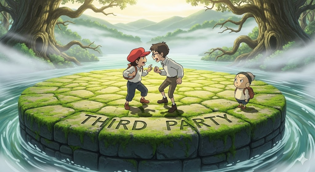 '주요'(main) '두'(two) '당사자'(party) (개인, 국가, **회사)**가 '얽혀' 있는 '거래'(deal), '분쟁'(dispute), 또는 '소송'에 '직접적'으로 **'관련'(related)**되지 않은 '별개의'(separate) **'개인'(individual)**이나 **'집단'**을 의미합니다. '중립'(neutral) 중재'(mediation) 역할이나 '간접적'(indirect) **'영향'(influence)**을 주는 주체에 초점이 맞춰집니다.