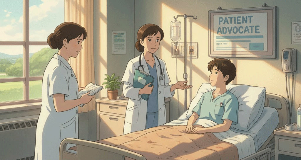 (명사) 환자 옹호자, 환자 권리 대변인