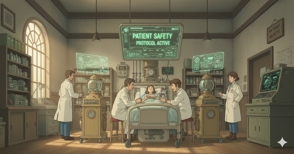 '의료'(medical) '시스템'(system)이나 '환경'(environment) 내에서, '환자'(patient)가 '치료'(treatment)를 받는 '과정'(process) 동안 '부상'(injury), '오류'(error), 또는 '위험'(danger)에 '노출'(exposure)되지 않고 '보호'(protection)되도록 '보장'(guarantee)하는 '조치'(measures)나 '원칙'(principles)을 의미합니다. '의료'(medical) '서비스'(service)의 '최우선'(top priority) 목표입니다.