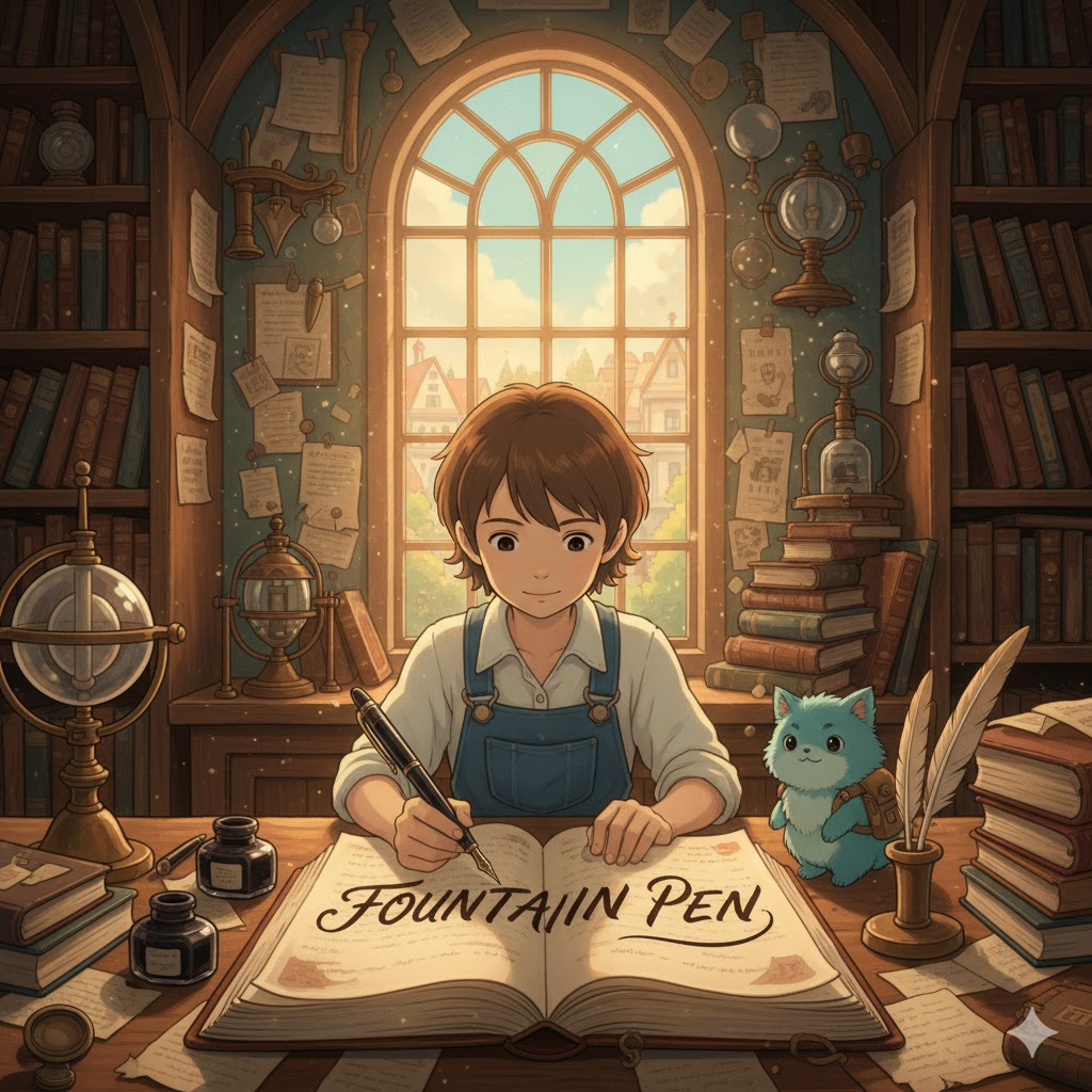 - 해석: 내장된 저장소에서 잉크가 공급되는, 고급 필기구의 한 종류.