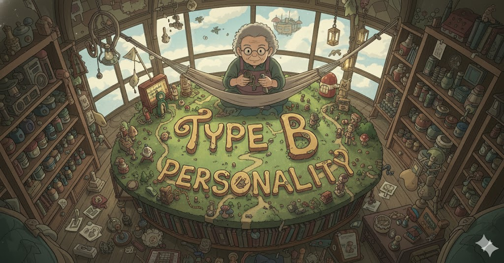 - 해석: 느긋하고, 비경쟁적이며, 유연하고 창의적인 특징을 보이는 성격 유형. (Type A와 대비)
