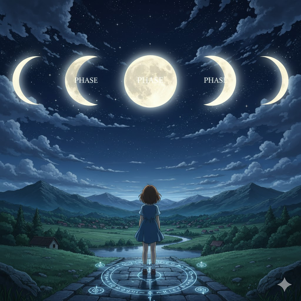 - 해석: 지구에서 관측될 때 보이는 달의 모양이 주기적으로 변화하는 단계.