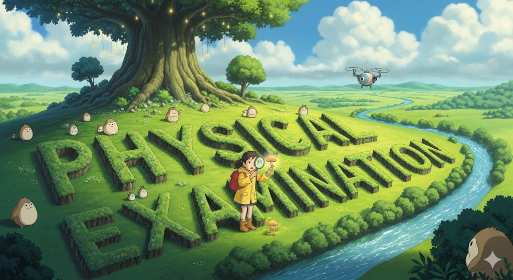 '의사'(doctor)나 '의료'(medical) '전문가'가 '환자'(patient)의 '신체'(body) '상태'(condition)와 '건강'(health)을 '진단'(diagnosis)하기 위해 '직접'(directly) '검사'(test), '측정'(measure), 또는 '촉진'(palpation)하는 '과정'(process)을 의미합니다. '질병'(disease) '예방'(prevention) 및 '치료'(treatment) '계획'(plan) 수립에 초점이 맞춰집니다.