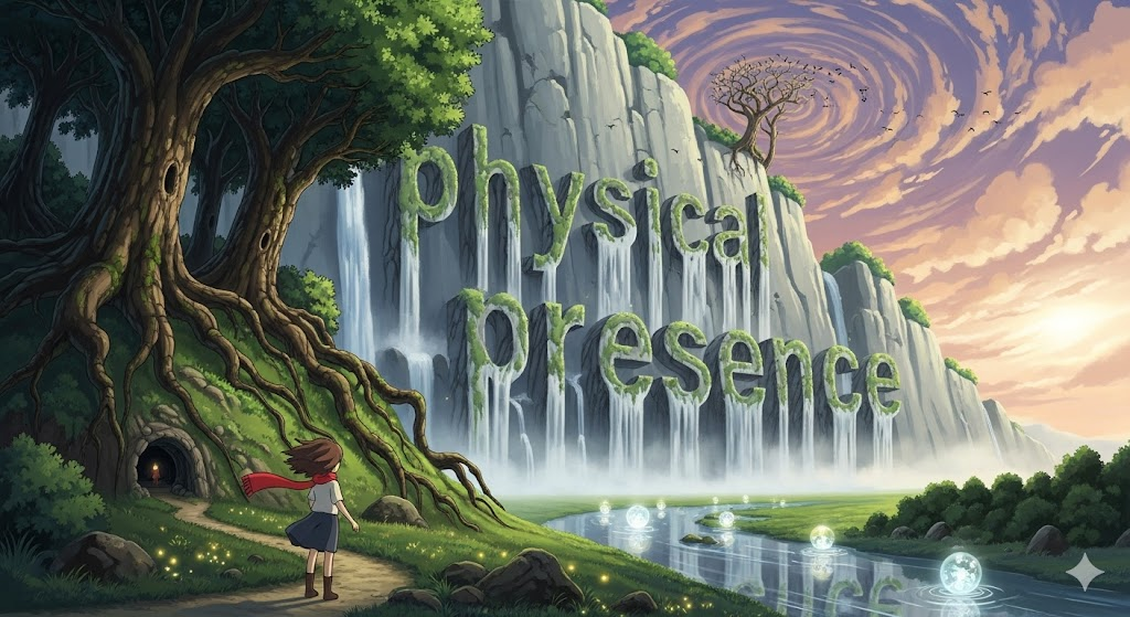 - 해석: 특정 장소에 실제로 몸이 있는 상태 (원격 접속이나 비접촉과 대비).