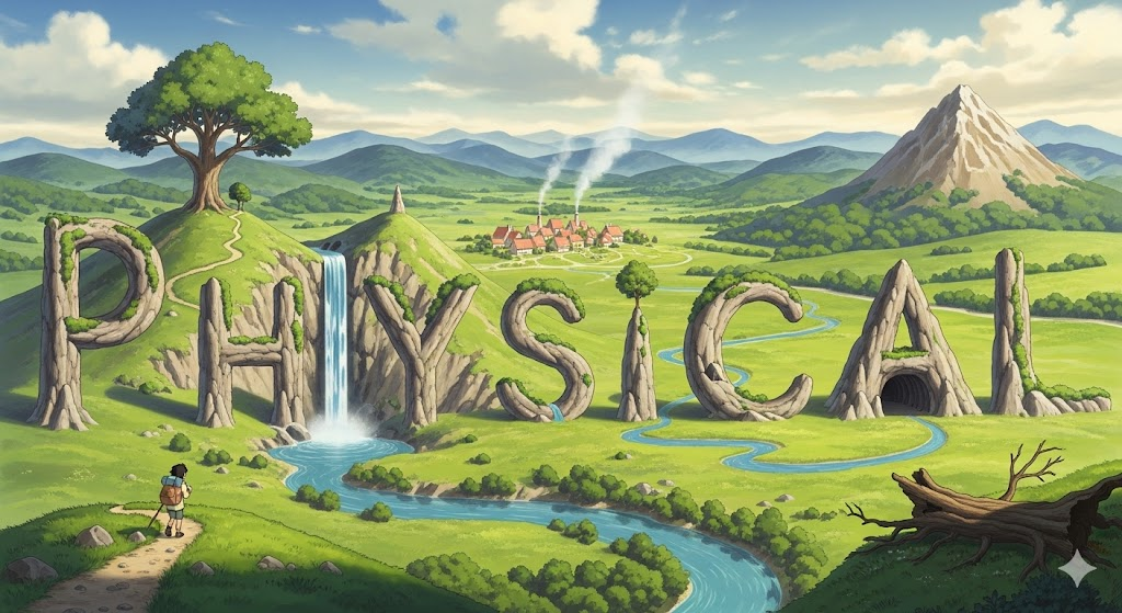 - (형용사) 물리적인, 자연의: 물질적 세계나 자연 법칙과 관련된; 눈으로 보고 만질 수 있는.