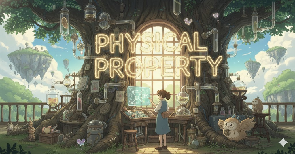 '물질'(material)이 '화학적'(chemical) '변화'(change) 없이 '보이거나'(observable) '측정'(measure)될 수 있는 '특징'(feature)을 의미합니다. '밀도'(density), '온도'(temperature), '표면'(surface) '면적'(area) 등 '실체'(substance)의 '물리적'(physical) '특성'(characteristic)에 초점이 맞춰집니다.