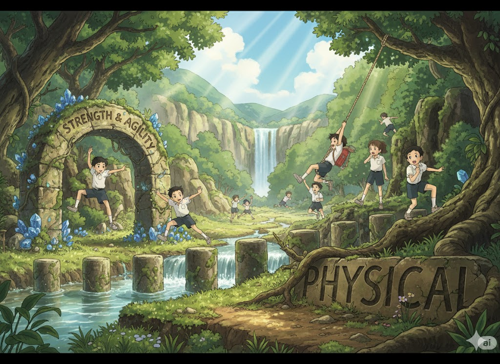 - 해석: 학교에서 운동과 건강 지식을 가르쳐 신체 및 정신 발달을 돕는 과목.