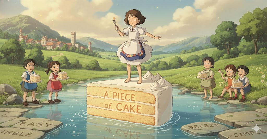 - 예문: Fixing the broken bicycle chain was a piece of cake for the experienced mechanic. (고장 난 자전거 체인을 고치는 것은 숙련된 정비사에게 매우 쉬운 일이었다.)