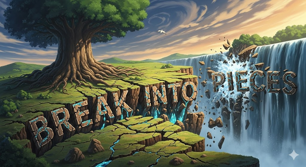 break into pieces [breɪk ˈɪntuː ˈpiːsɪz]